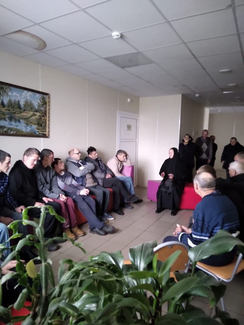 15 октября игумения монастыря «Святых Царственных Страстотерпцев» монахиня Анастасия провела беседу по религиозным темам в отделении Сумароково ОГБУ «Сусанинский ПНИ».