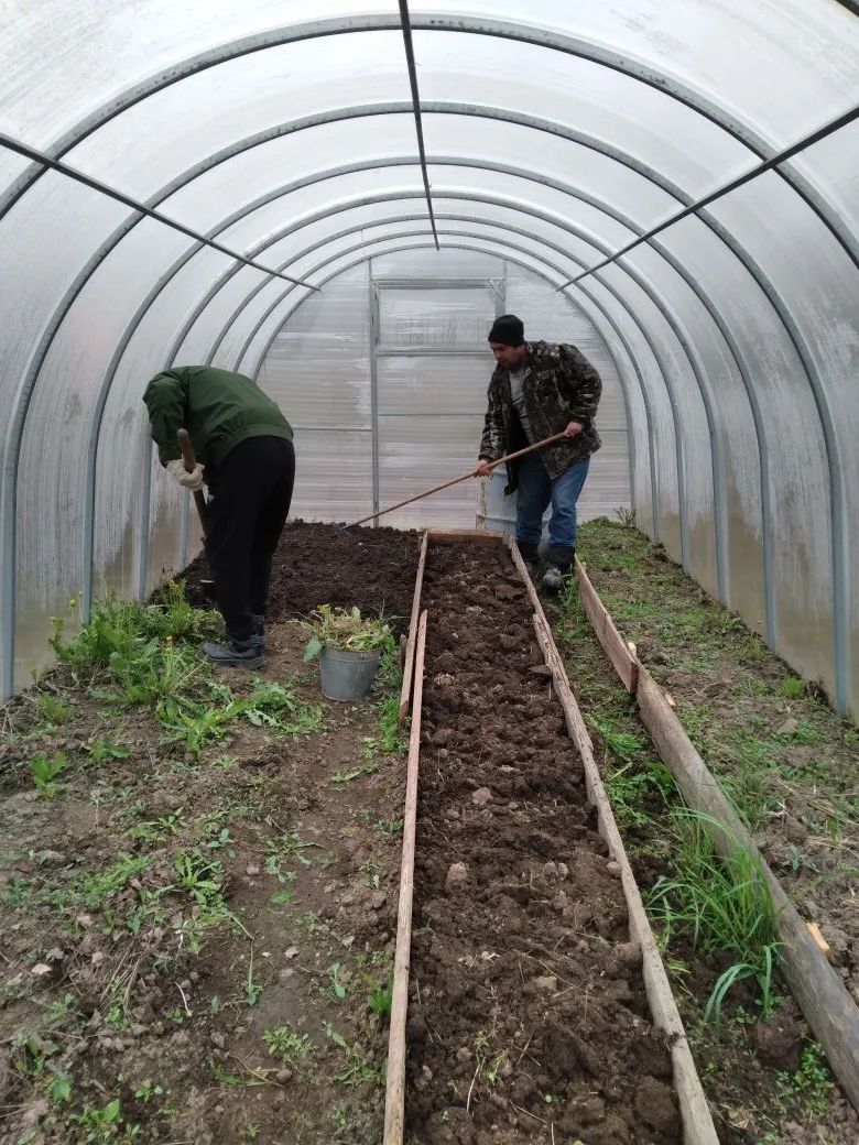 22 апреля волонтёрская бригада в составе Трубина Михаила, Игнатьева Алексея, Панихина Владимира, Уразалиева Рината и Сахарова Павла провела важную работу по подготовке теплиц к весенним посадкам. Ребята тщательно перекопали почву, обеспечив тем самым благоприятные условия для будущего урожая.