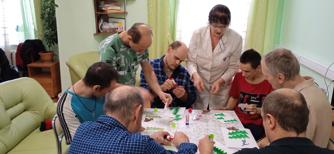 Под чутким руководством Ирины Анатольевны социальные клиенты с азартом создавали зимний лес из цветной бумаги, дополняя его сказочными лесными жителями. Участники с удовольствием делились идеями, помогали друг другу в выборе цветовой гаммы и оформлении деталей аппликации.