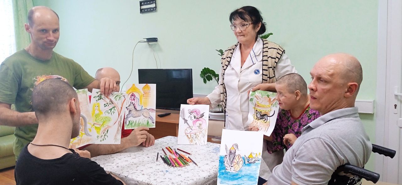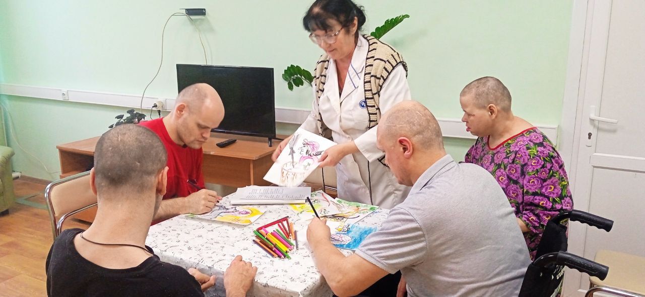 После того, как волшебный мир лукоморья был представлен, социальные клиенты с энтузиазмом приступили к самому творческому этапу мероприятия. Под руководством И.А. Нарскиной они взялись за карандаши, чтобы раскрасить героев поэмы.