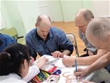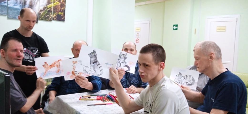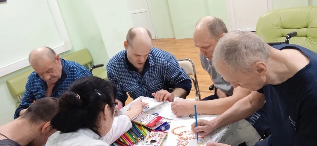 В отделении милосердия инструктор по труду Нарскина Ирина Анатольевна организовала увлекательный мастер-класс по раскрашиванию. На листах бумаги оживали силуэты прекрасных кошек. Каждый мог дать волю своей фантазии, раскрашивая животных так, как им подсказывало сердце.