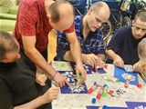 Под руководством сотрудников, участники мастер-класса наклеивали заранее подготовленные снежинки на листы синего картона. В результате получились прекрасные композиции, напоминающие зимнее ночное небо, усыпанное белыми снежинками. Данное мероприятие способствовала развитию мелкой моторики рук, а также стимулировала творческое воображение и фантазию участников.
