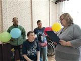 Двадцатого марта в стенах ОГБУ «Сусанинский ПНИ» отмечался знаменательный юбилей – 75 лет со дня рождения Прокофьевой Надежды Васильевны. В этот торжественный день волонтёры учреждения под руководством библиотекаря Шароновой Светланы Игоревны, посетили женский корпус интерната, чтобы почтить юбиляршу поздравлениями и теплыми пожеланиями.