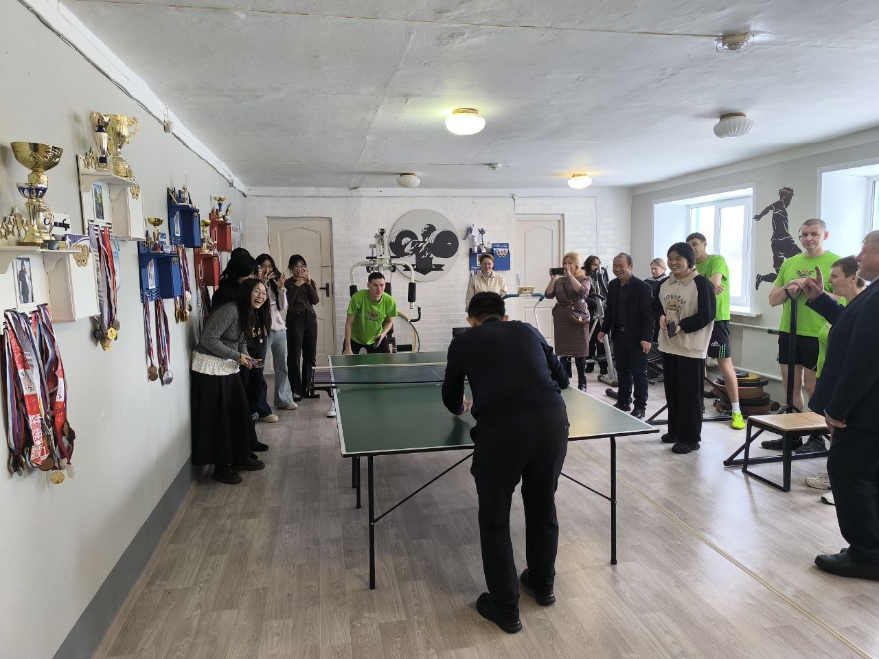 Делегация посетила спортивный зал, где тренер Иван Михайлович Шевалдин подробно рассказал о многообразии спортивных мероприятий, проводимых с проживающими, и достигнутых успехах. Китайские студенты с энтузиазмом приняли участие в игре в настольный теннис с социальными клиентами учреждения, продемонстрировав дружелюбие и открытость. Это стало ярким примером того, как спорт может объединять людей, независимо от их возраста и возможностей.