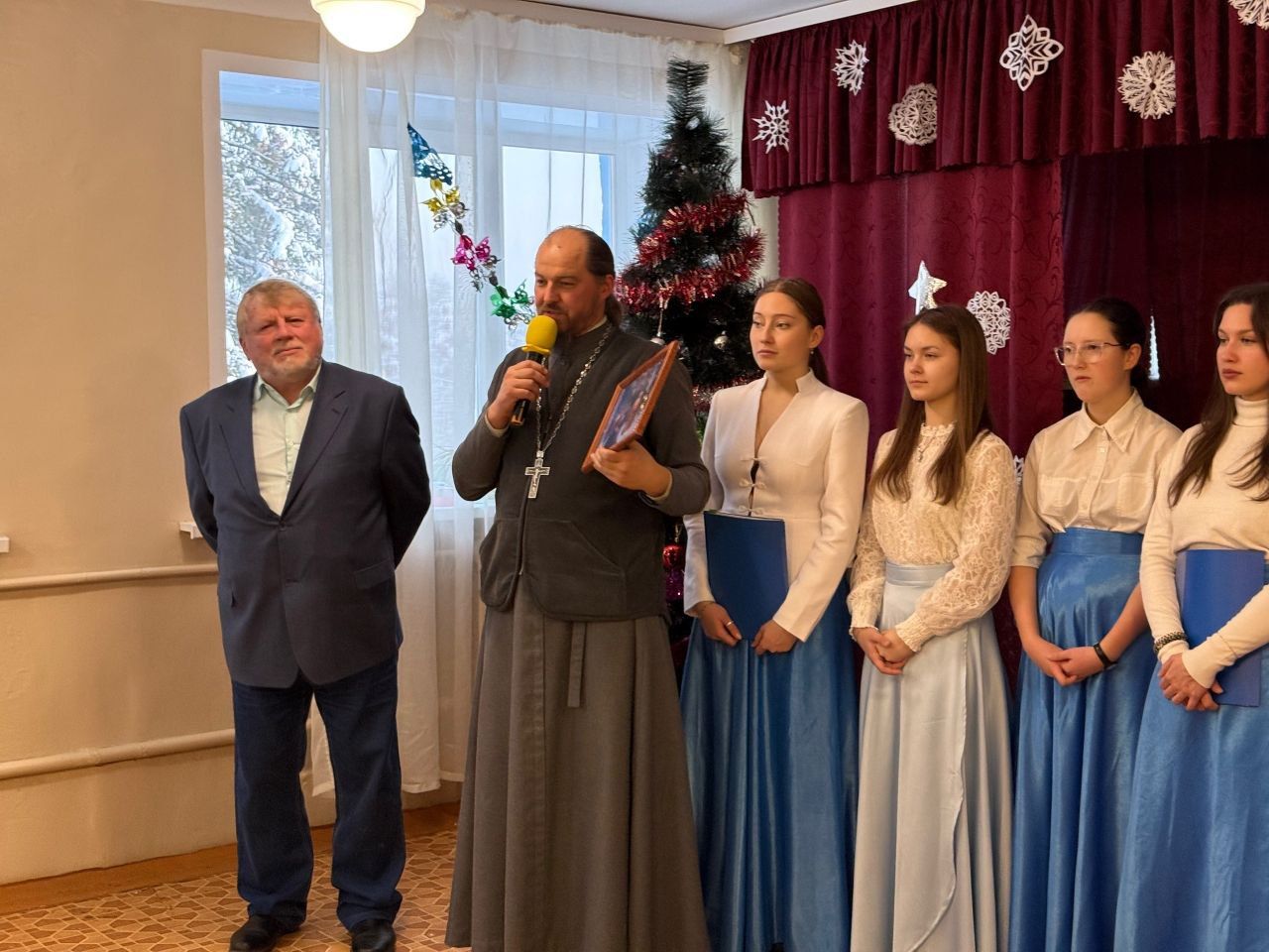 Мелодии, пронизанные глубокой духовностью и теплотой, коснулись сердец каждого присутствующего. Исполнение колядок наполнило акустическое пространство учреждения праздничной атмосферой молитвы и радости. Настоятель Храма Спаса-на-Запрудне иерей Иоанн Степанов обратился к получателям социальных услуг с вдохновляющей речью о заповедях Христа, подчеркнув важность и актуальность учения Христа в современном мире.