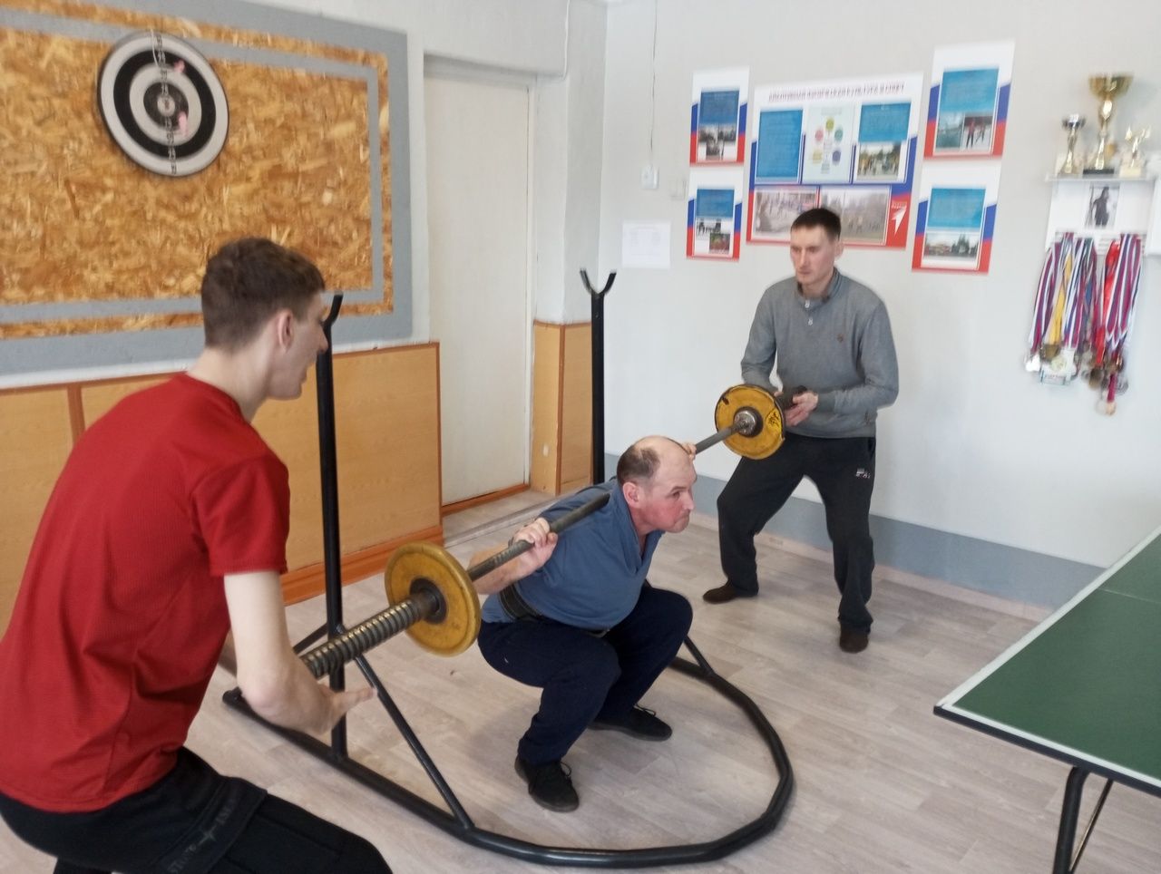В упражнении приседание со штангой, лучший результат 30 кг. первое место заняла среди женщин Валентина Захарова. Среди мужчин с весом штанги 65 кг. сильнейшим был вновь Александр Гренков. Второе и третье место заняли Алексей Масленников и Денис Зотов.