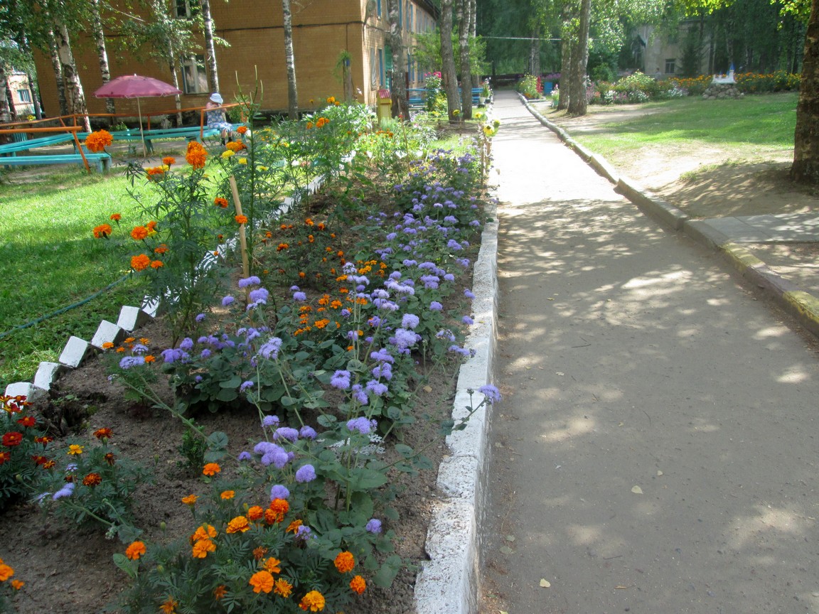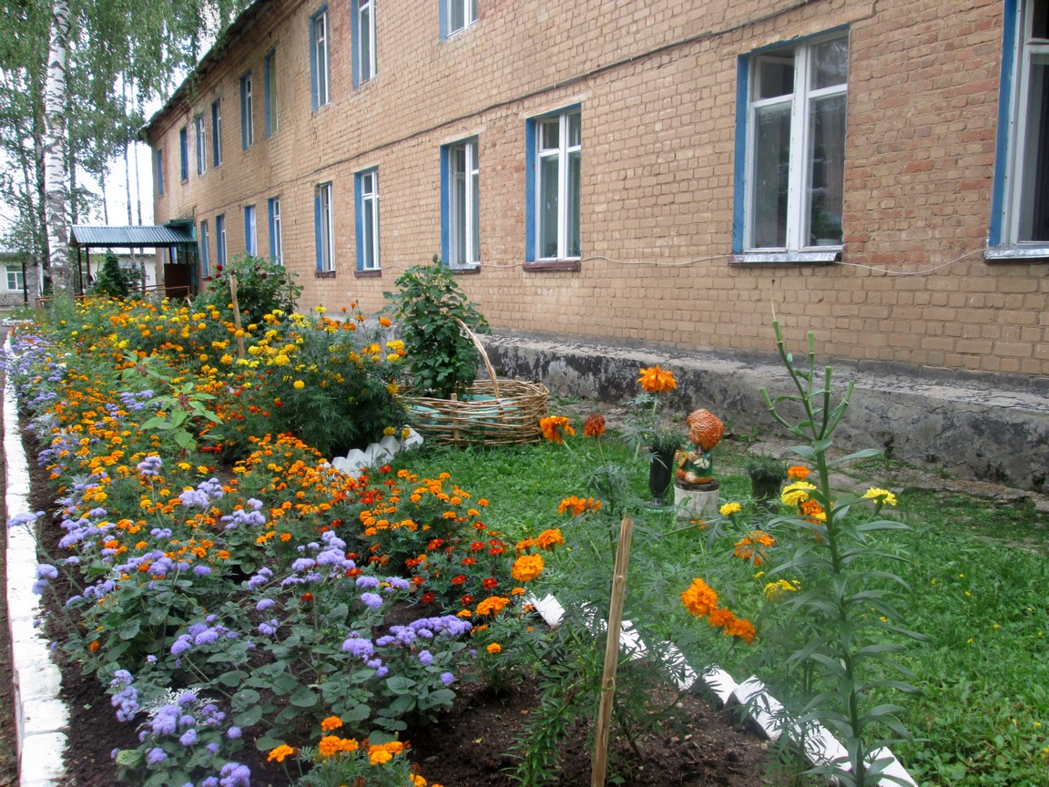 На территории отделения   имеется  березовая аллея, растут кустарники акации, калины.Клумбы окружены декоративным забором. На наших клумбах в течении всего теплого года цветут гвоздики, бархатцы, лилии, георгины, петунья, розы, агератум.