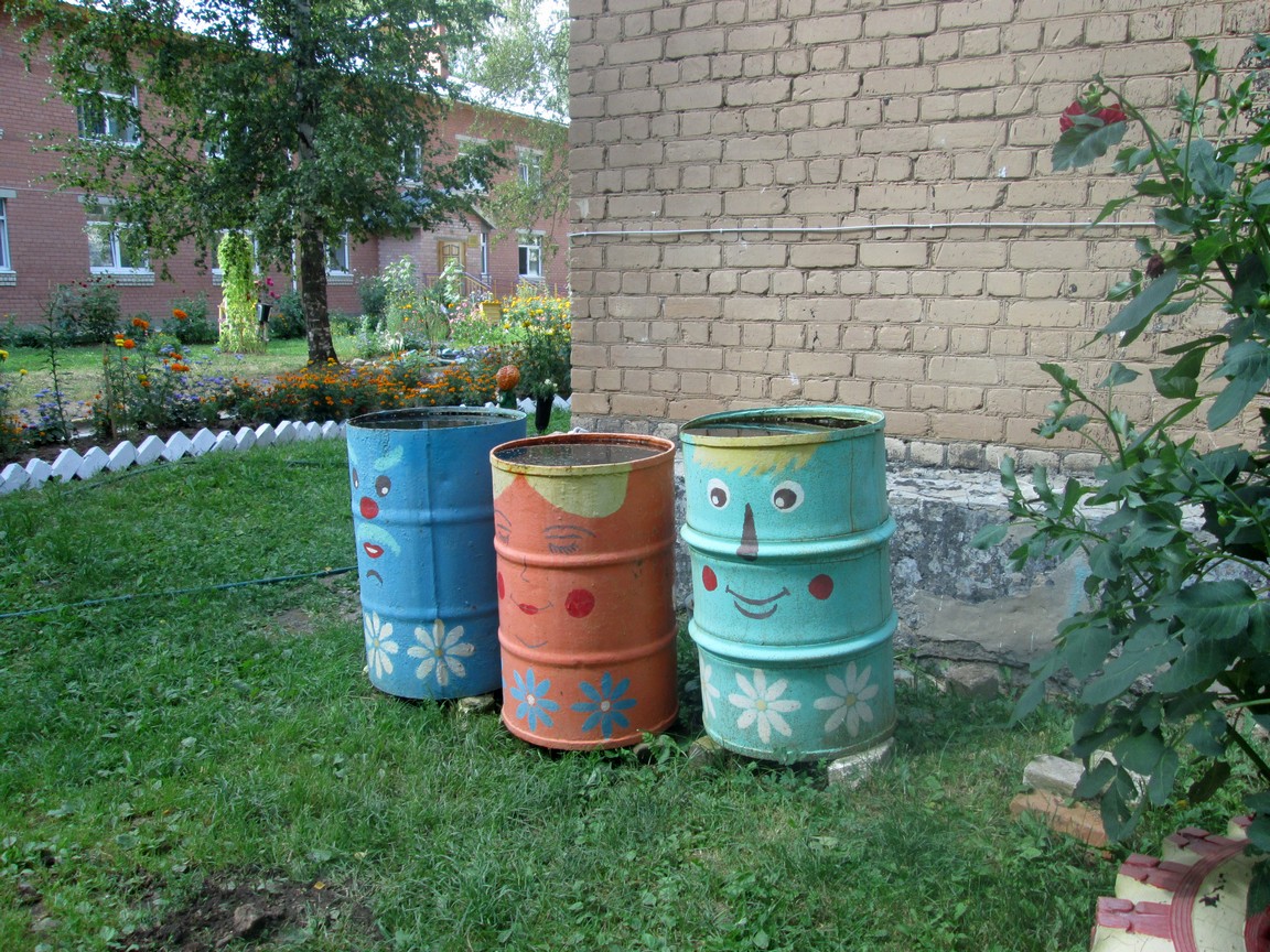 В качестве облагораживания ландшафта территории мы приспособили практически любой предмет: части старой мебели, высохшие деревья, предметы интерьера, домашней утвари, пластиковые бутылки и многое другое.