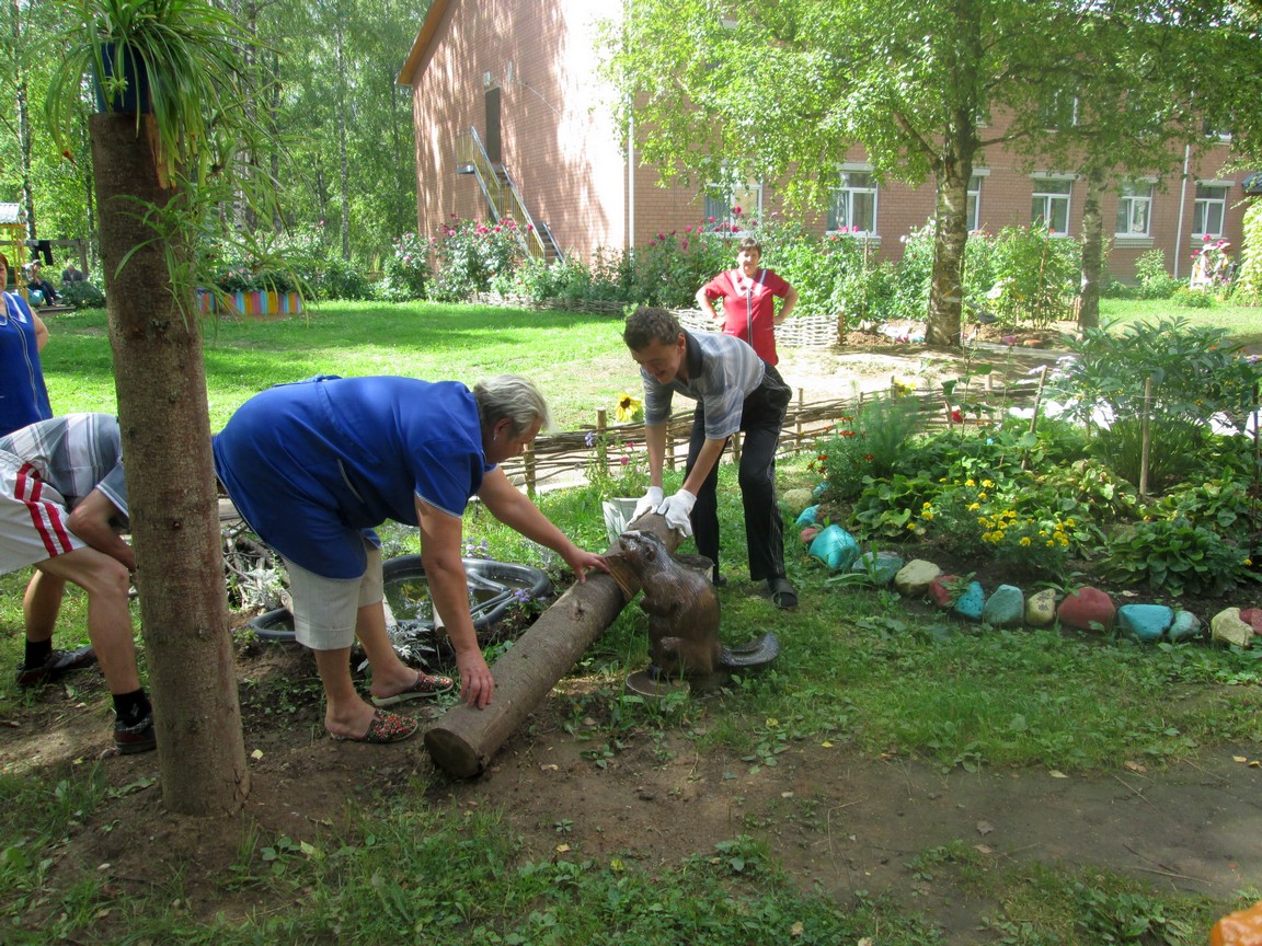 При этом имеющиеся деревья, кустарники гармонично должны включаться в обновленный проект и соответствовать интересам клиентов проживающих в отделении.
