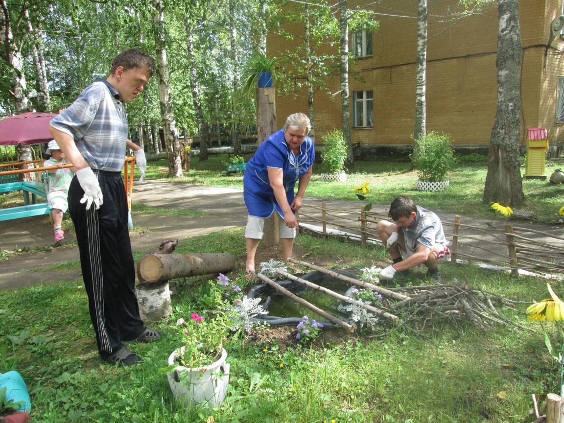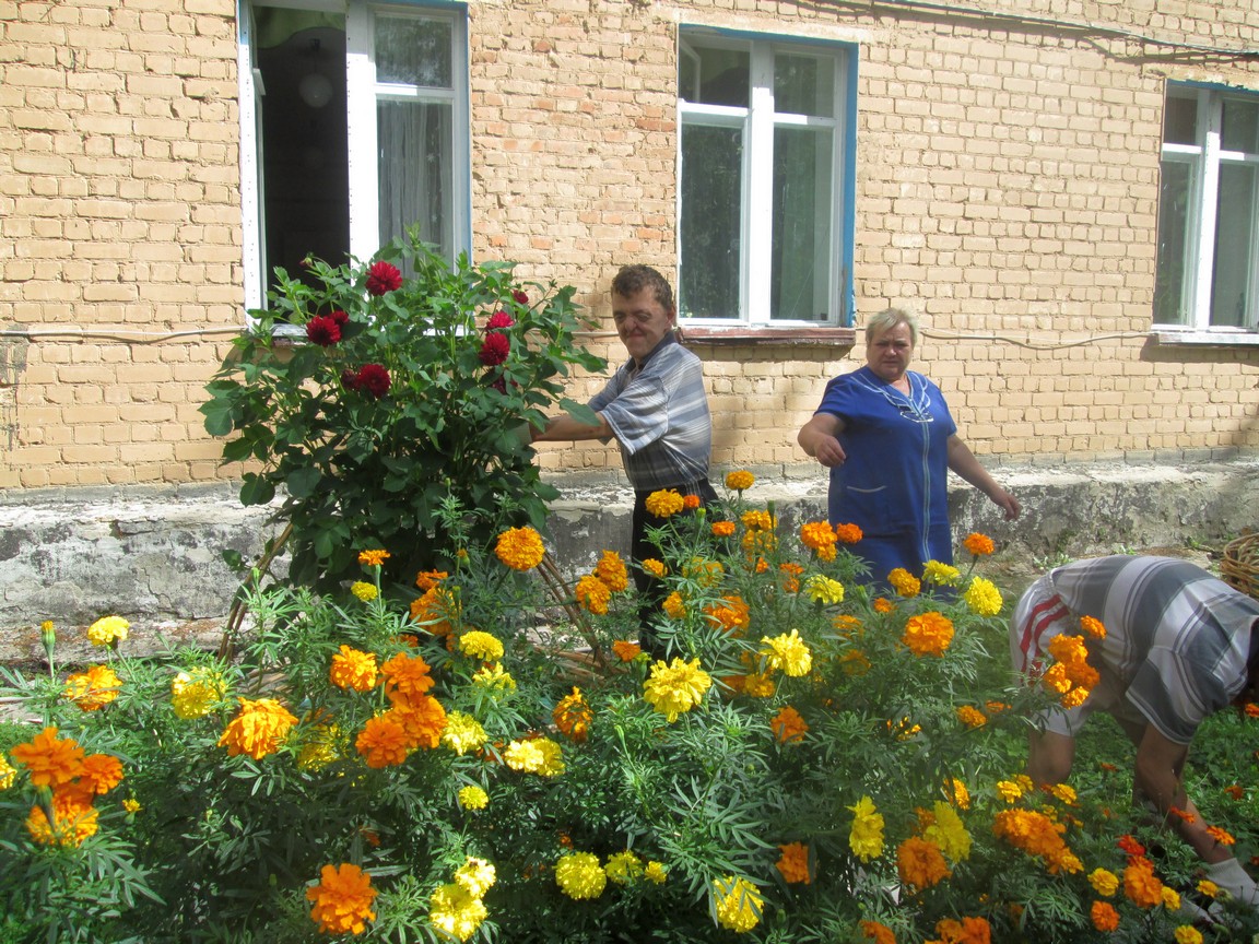 Совместно с клиентами отделения постоянно ведется работа по благоустройству территории. Посадка различных цветочных культур, ландшафтный дизайн участка позволяют улучшать экологическую обстановку.