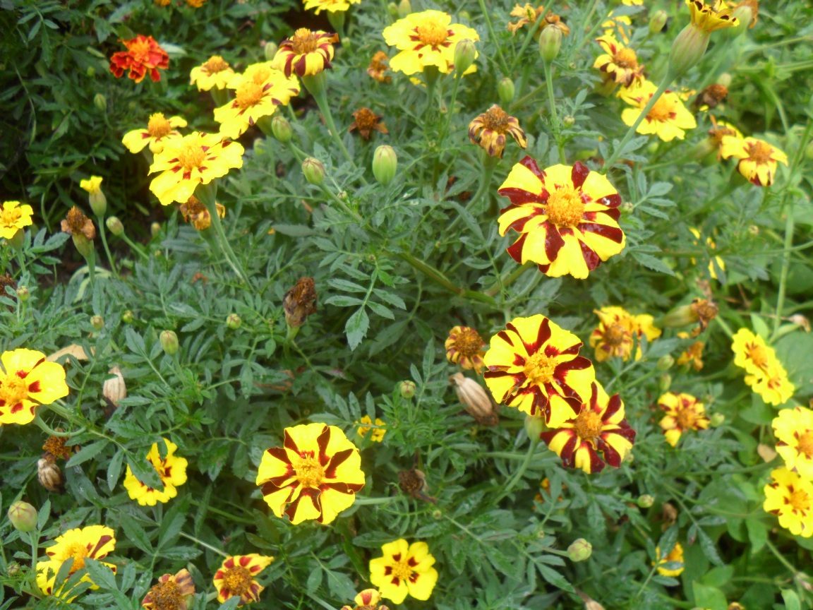 Разнообразие сортов бархатцев неплохо смотрятся на клумбах.