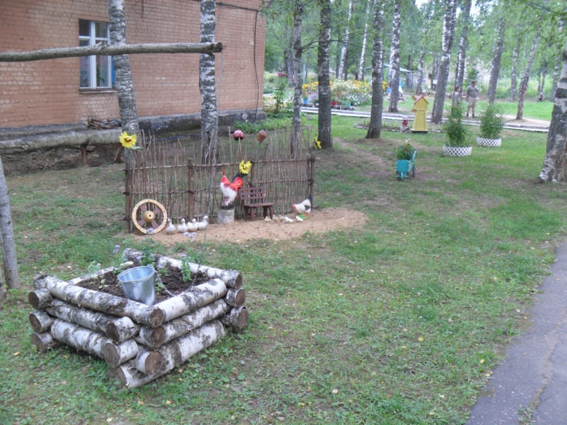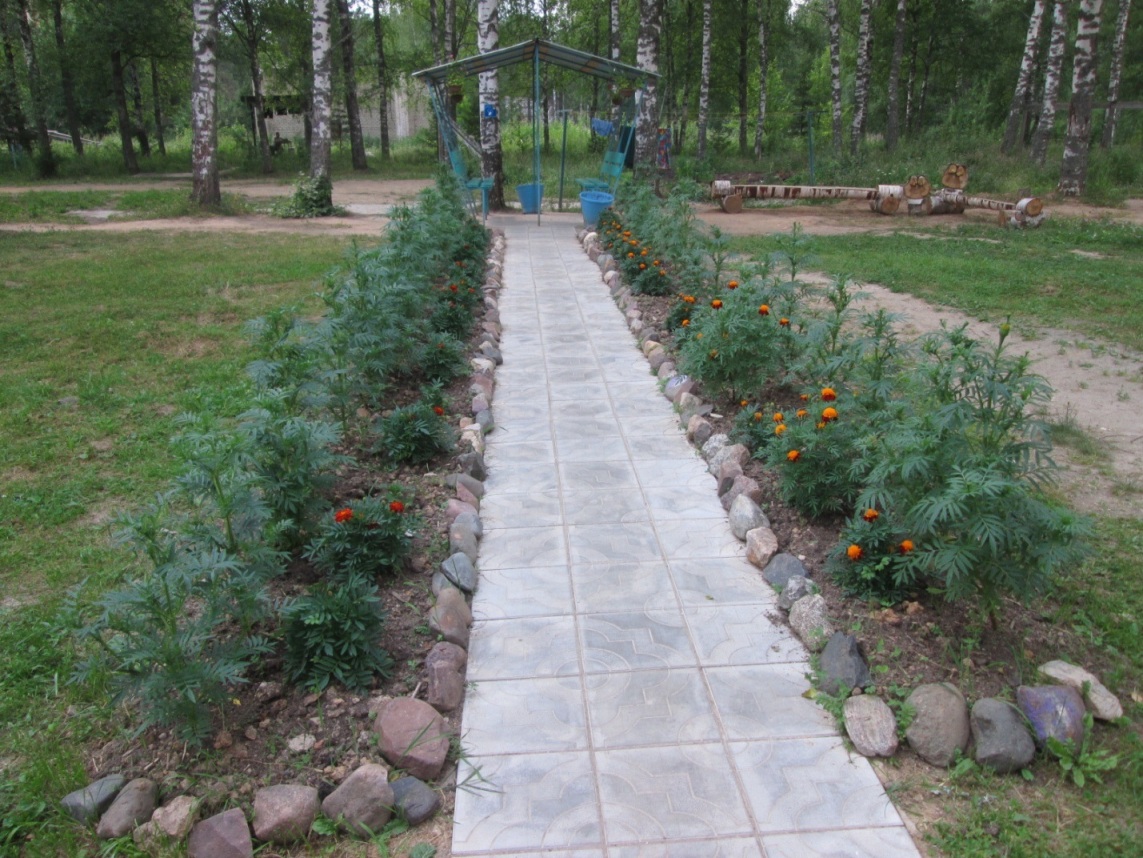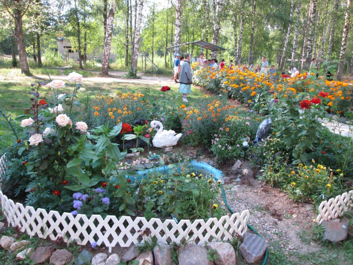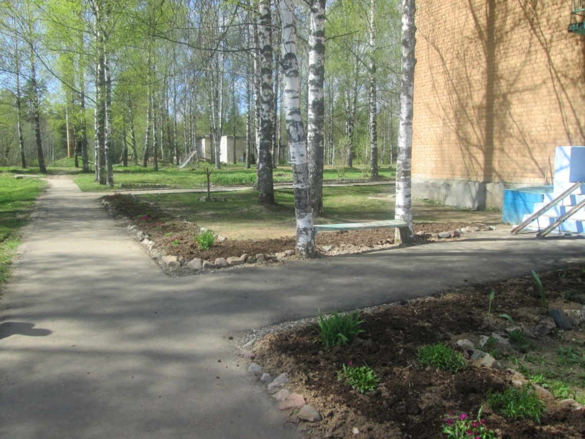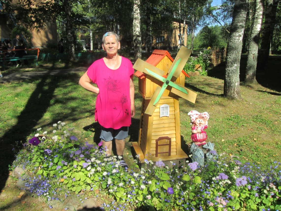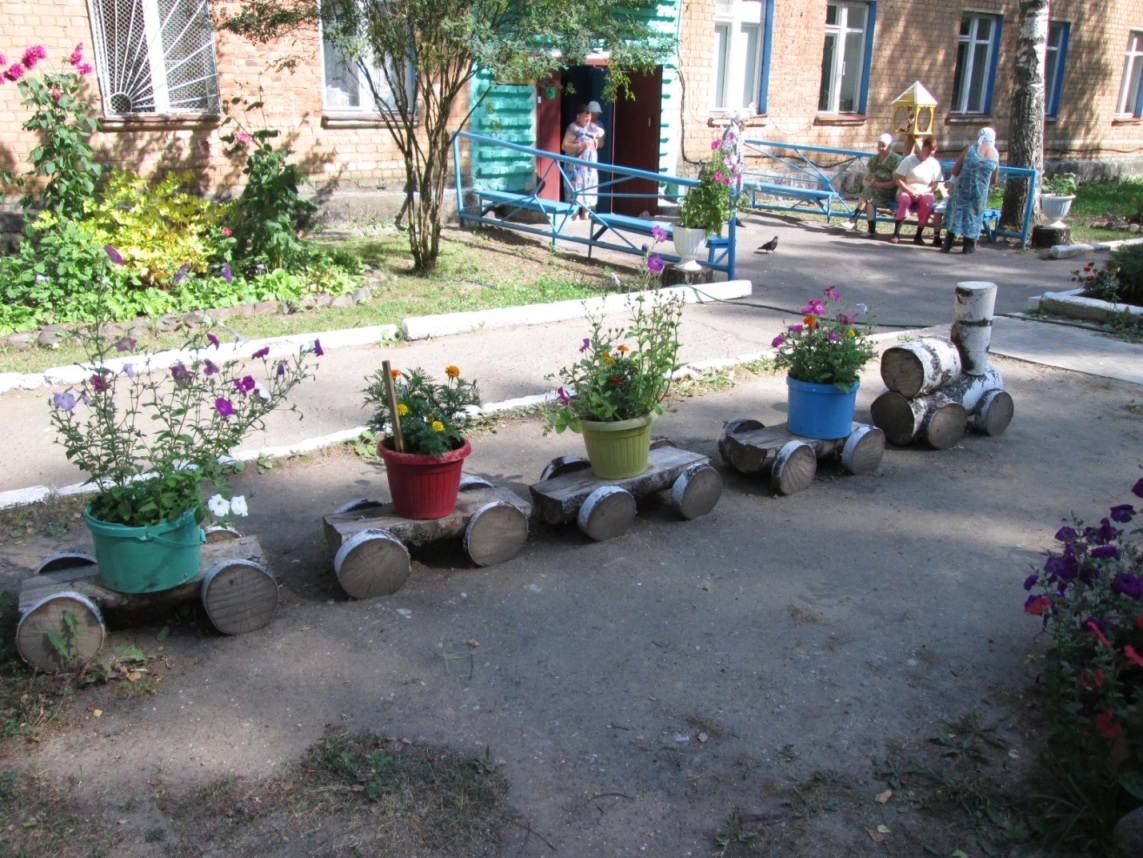 Самой главной частью  в благоустройстве территории корпуса являются яркие цветники, созданные руками инструктора по труду и клиентами отделения. Женщины ( клиенты отделения) всегда с большим интересом выращивают своими руками рассаду из семян , в дальнейшем ухаживают за растениями. С весны и всё лето наши цветники радуют глаз различными цветами: лесными ландышами, тюльпанами, нарциссами, ирисами, флоксами, георгинами, петуньями, бархатцами и многими другими цветами.