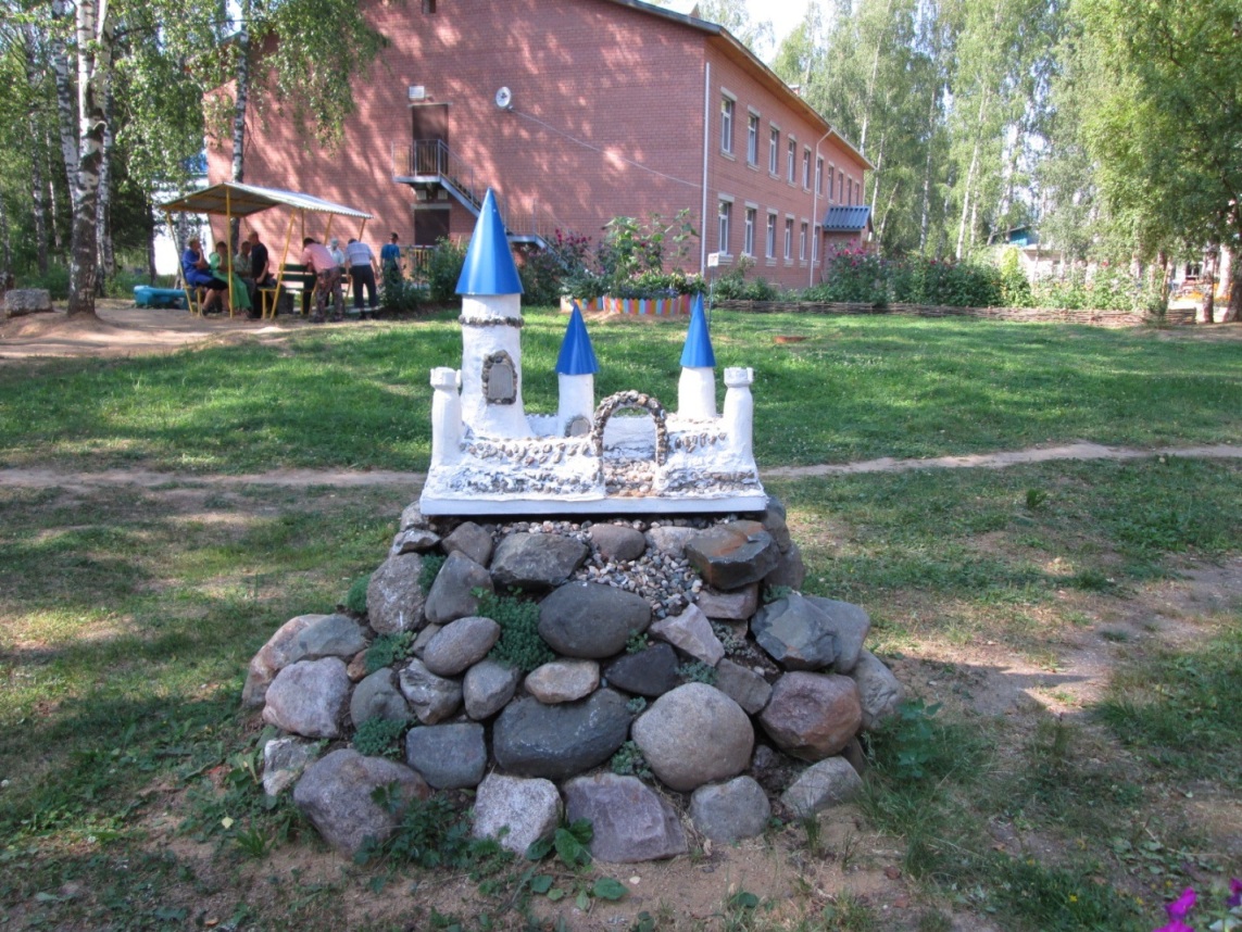 По левую сторону водоёма возвышается на выложенной из камней горе замок.   Замок сделан из цементной смеси. Основой замка служат подручные материалы такие как : жестяные банки из под краски, бутылки и остатки железа.