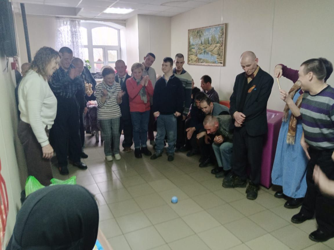 Волонтёры, в свою очередь, устроили небольшой концерт с песнями, под которые проживающие с удовольствием танцевали. Также они организовали интересную игру, добавив праздничной атмосфере ещё больше веселья. Инструктор по труду Беззастоина Т.В. провела для гостей экскурсию по памятным местам села Сумароково, поделившись историей возникновения местного храма.