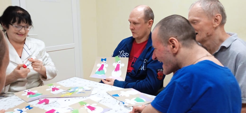 В отделении милосердия под руководством опытного мастера Нарскиной И.А. прошел увлекательный мастер-класс по изготовлению снеговиков из бумаги. Вместе с социальными клиентами Ирина Анатольевна погрузилась в мир творчества, где бумажные листы превратились в забавных снеговиков с яркими пуговицами, смешными морковками вместо носов и уютными шапками.