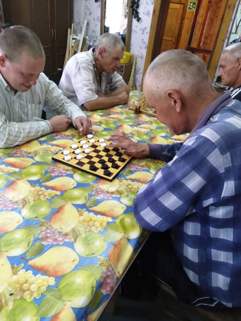 20 августа 2021 года в ОГБУ «Сусанинский ПНИ» отделении Сумароково библиотекарь Беззастоина Т.В.организовала и провела для получателей социальных услуг шахматно-шашечный турнир.