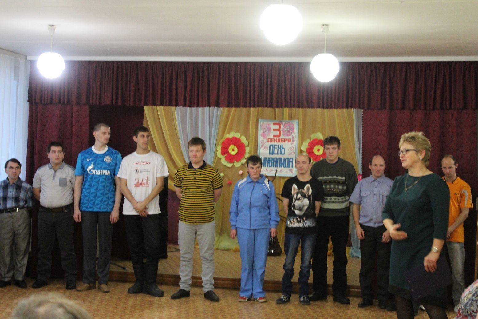 Международный день инвалидов напоминает всем о нуждающихся в поддержке и помощи, но, в то же время мужественных, крепких духом людях, проявляющих таланты в профессиональном мастерстве, изобразительном, самодеятельном творчестве, спорте. Вот и среди социальных клиентов нашего интерната есть те, кто отстаивает честь нашего учреждения в районе, области, по всей России и даже в мире. Их жизнелюбие, оптимизм, стремление к победам могут служить примером для всех нас. О каждом из спортсменов было сказано много хороших и добрых слов и вручены небольшие сладкие подарки.