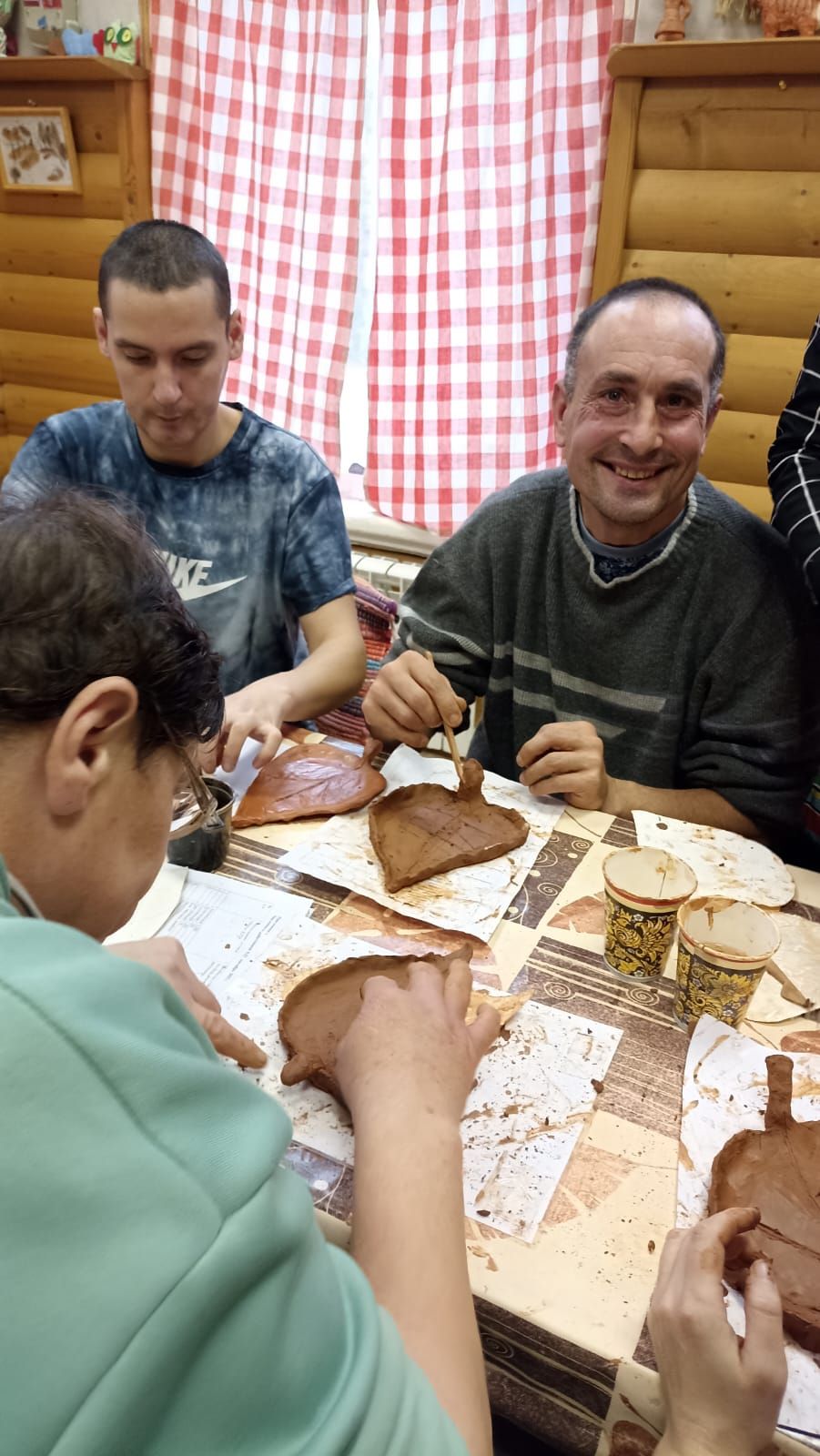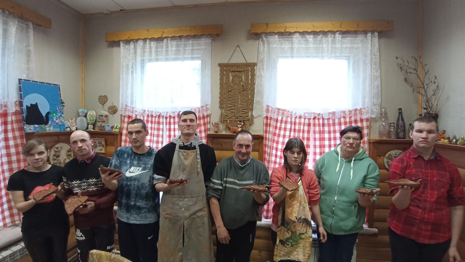 23 октября социальные клиенты ОГБУ «Сусанинский ПНИ» посетили Дом народных ремесел "Берегиня" в п. Сусанино. Методисты Ирина Владимировна и Наталья Владимировна провели для участников мастер-класс по лепке тарелок в виде листика из глины.