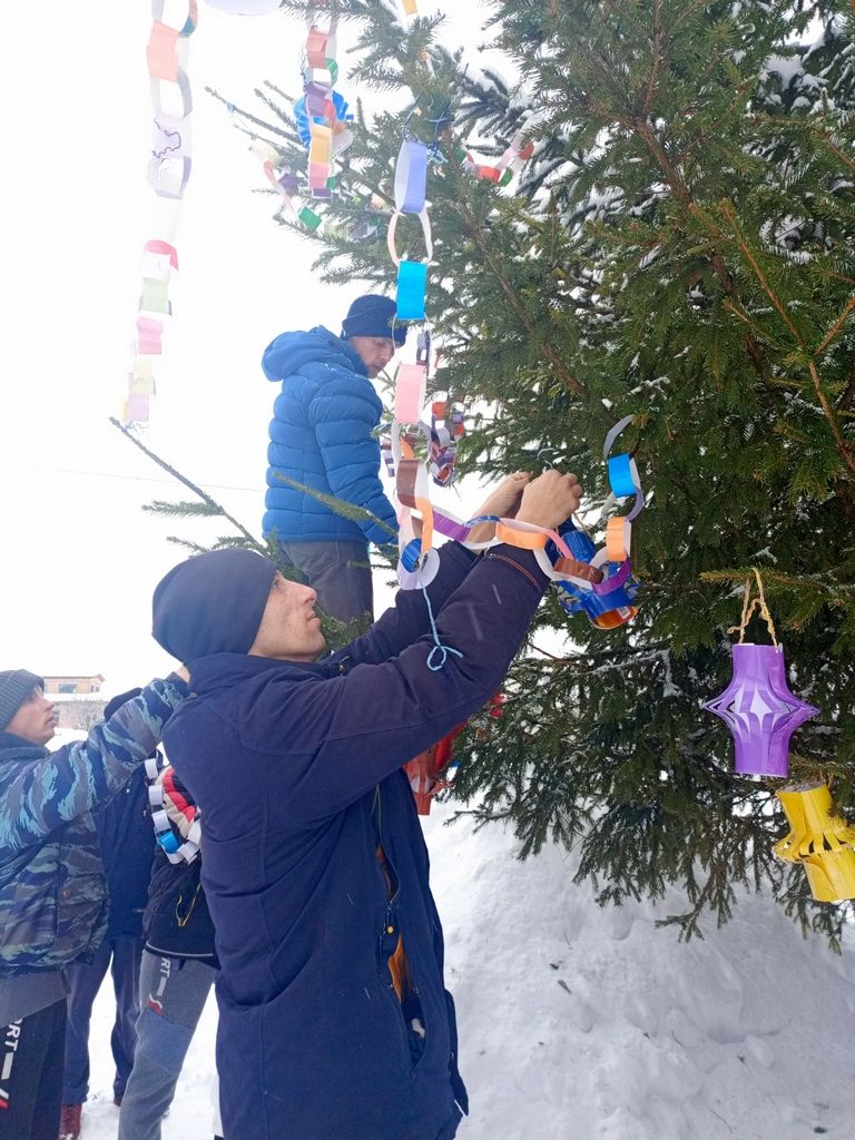 Когда все украшения были готовы, социальные клиенты вместе с сотрудниками интерната с радостью украсили елку своими творениями. Яркие фонари, снежинки, гирлянды и другие поделки преобразили елку, превратив ее в символ наступающего праздника.
