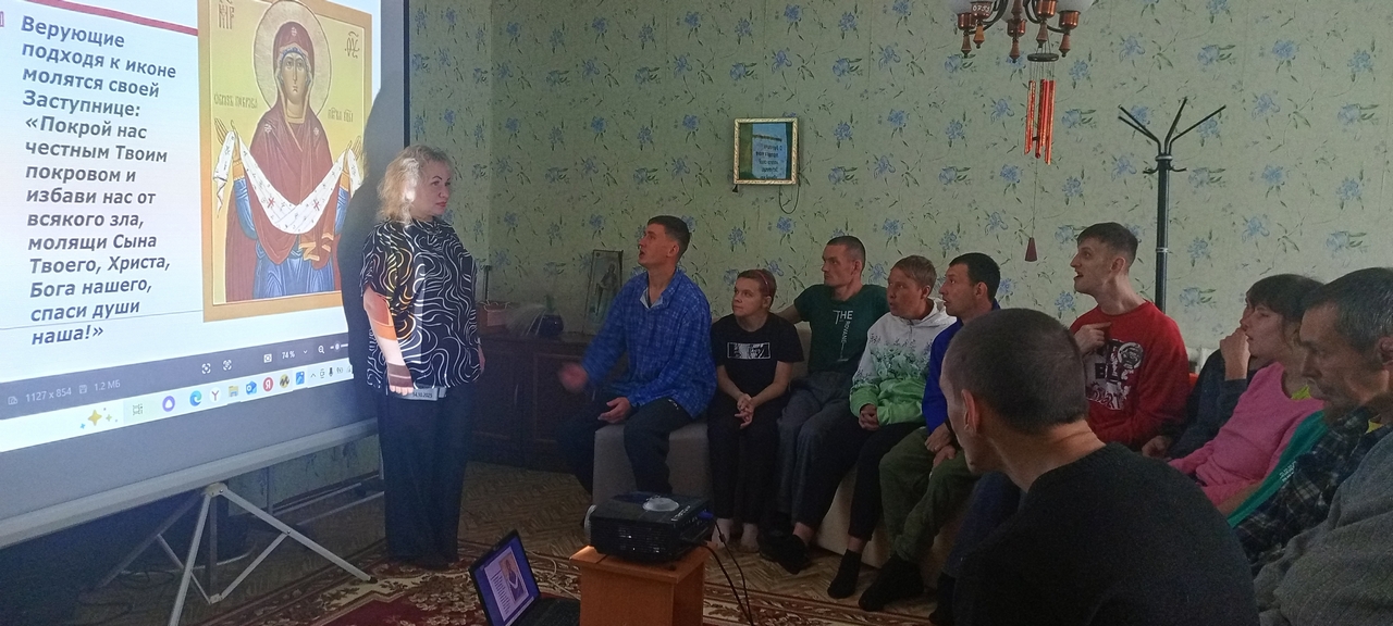 С целью углубления понимания праздника, клиенты просмотрели видеоролик, раскрывающий историю и традиции Покрова, а после посетили храм, расположенный на территории учреждения, где смогли прикоснуться к атмосфере духовности и умиротворения.