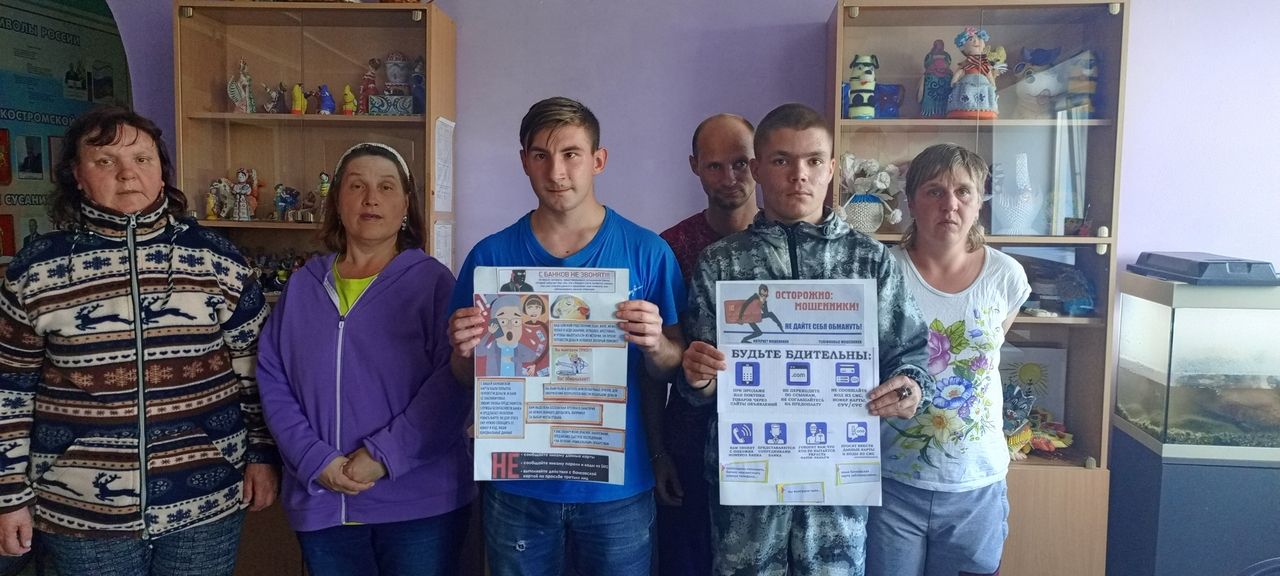 Сегодня воспитатель ОГБУ "Сусанинский ПНИ" Чапурина Галина Геннадьевна провела мероприятие, посвященное повышению финансовой грамотности. Социальные клиенты приняли участие в практикуме «Создание памятки правильного поведения для минимизации рисков от действий финансовых мошенников».