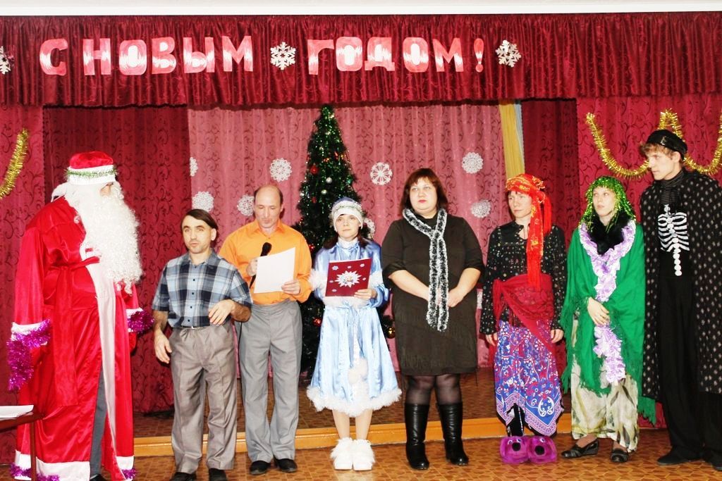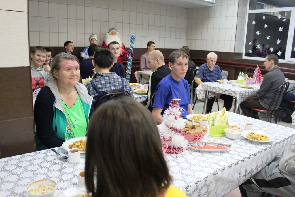На праздничный ужин поздравить социальных клиентов с Новым годом пришли Дед Мороз и Снегурочка, которые создали сказочную атмосферу.