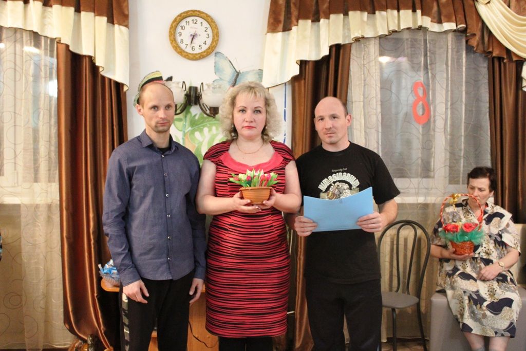 8 марта в отделении реабилитации ОГБУ «Сусанинский ПНИ» для социальных клиентов состоялась праздничная конкурсно-развлекательная программа «Для милых дам». Все социальные клиенты приняли активное участие. Белков Владимир и Смирнов Сергей для женщин читали стихи, Алексахин Андрей и Яковлев Григорий исполняли песни, от остальных мужчин звучали теплые слова поздравлений и пожеланий.