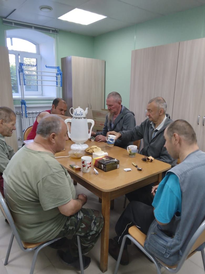 Праздник проходил в уютной обстановке за чашечкой ароматного чая. Инструктор по труду Тамара Владимировна Беззастоина провела интересную беседу о знаках Зодиака, соответствующих датам рождения именинников. Особые слова поздравлений были адресованы артисту отделения Сергею Кедрову, которому 6 июля исполнилось шестьдесят лет.