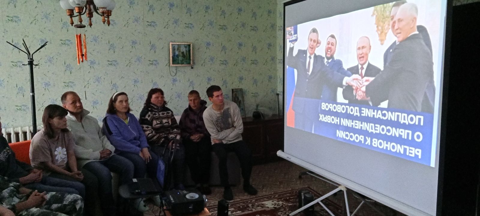 С целью ознакомления с важными историческими событиями, 30 сентября получатели социальных услуг ОГБУ "Сусанинский ПНИ " посмотрели видеоролик, посвященный Дню воссоединения России с Донецкой Народной Республикой, Луганской Народной Республикой, Запорожской и Херсонской областями.